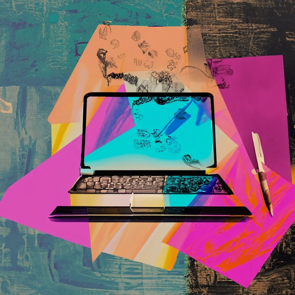 Image by Dall-E, prompt: writer, digital, laptop, creative